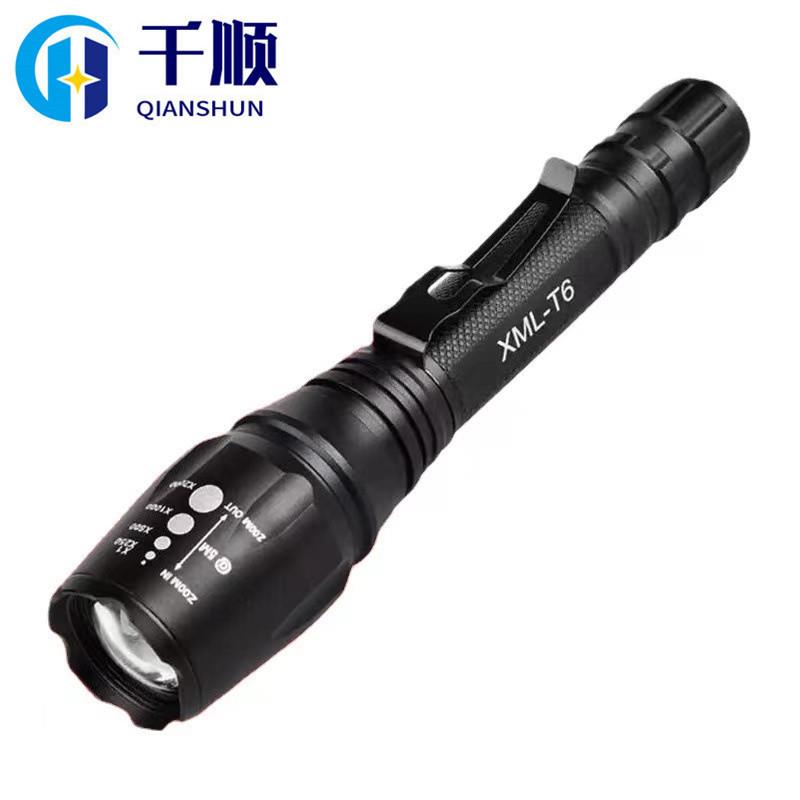 T铝合金LED强光手电筒变焦远射充电户外照明夜骑露营跨境货源