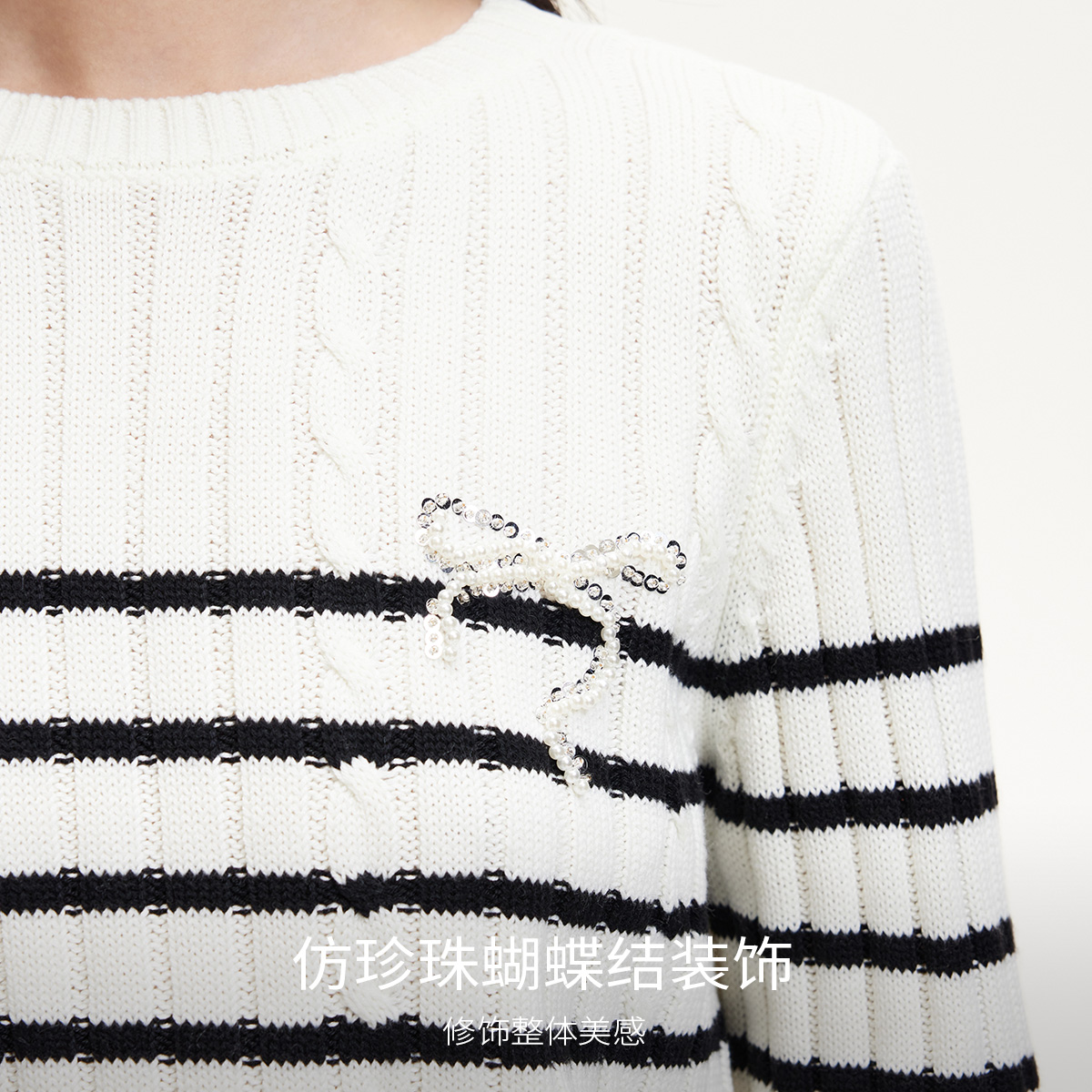 Moda针织衫 饰针织衫 2025春季 圆领条纹仿珍珠装 百搭 新款 Vero