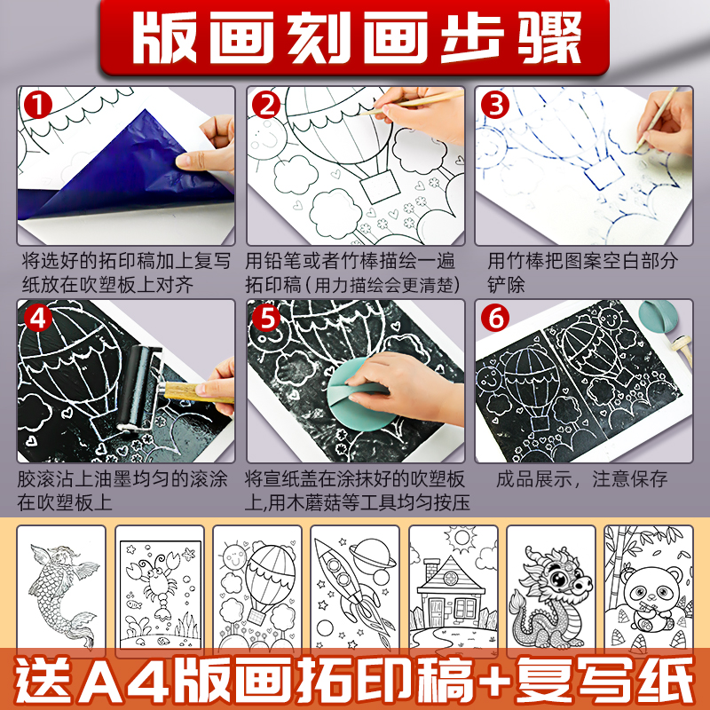 马利吹塑纸板画材料a4儿童版 美术diy材料8k4开小学生创意手工4mm加厚彩色卡纸画板幼儿园趣味 画工具套装
