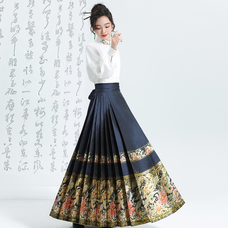 春夏款 醉雨朵 日常明制汉服女2025新款 高端马面裙套装 藏蓝鹿神