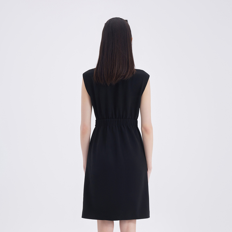 帝柔帝柔黑色连衣裙2025秋季 显瘦通勤 套头高腰休闲腰带简约大码