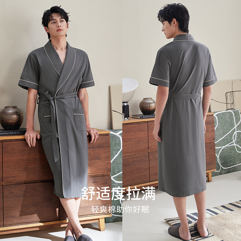 纯棉短袖 薄款 睡袍短裤 两件套装 浴袍家居服 轩靓男士 加大码 睡衣夏季