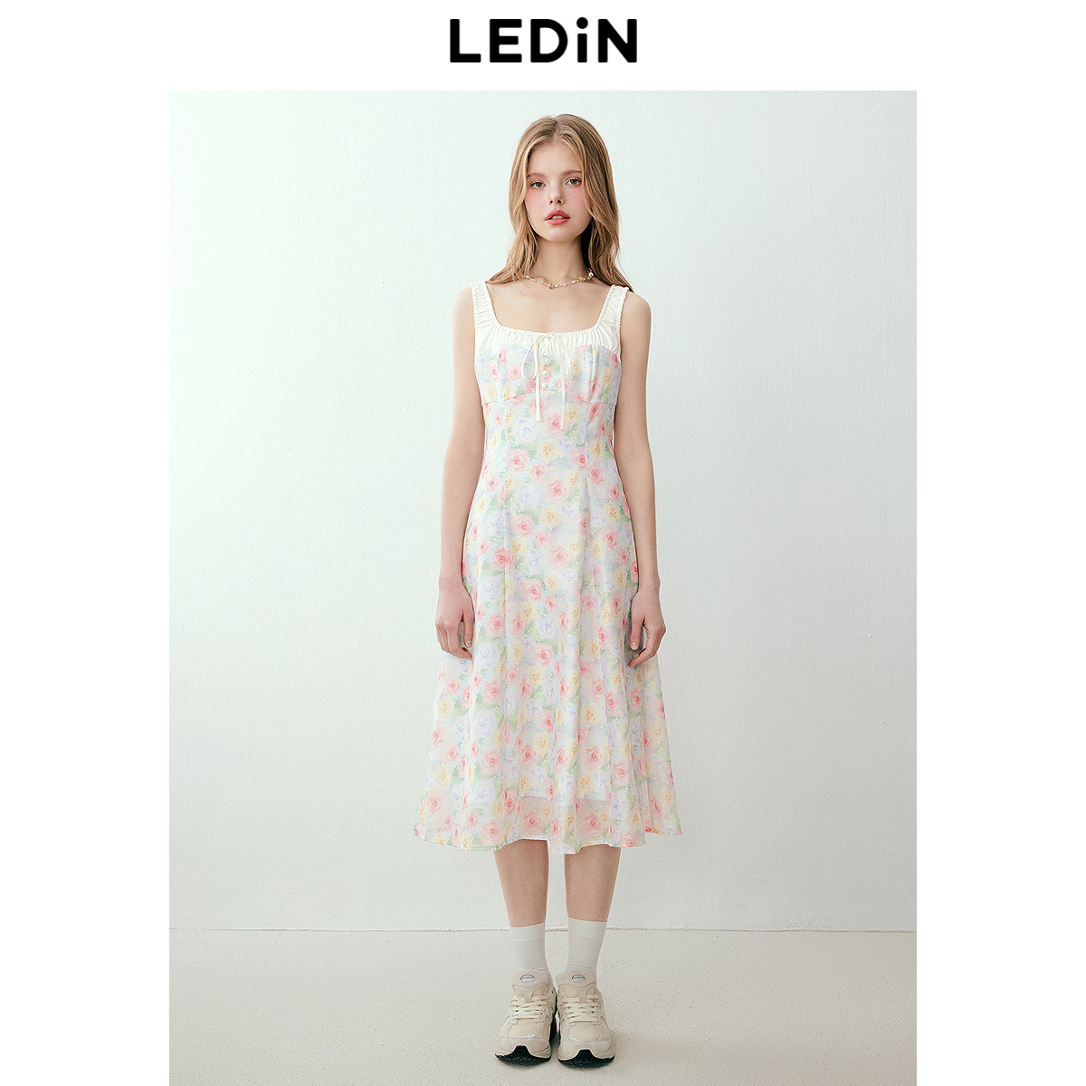 收腰背心裙优雅 2025夏新款 森马连衣裙女纯色无袖 长裙休闲温柔时尚