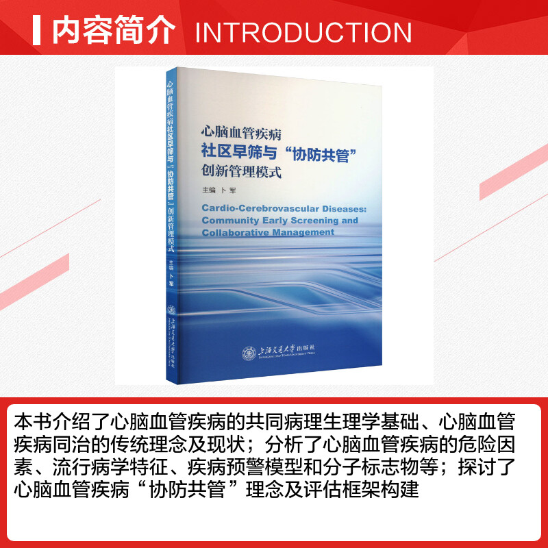 卜军 编 上海交通大学出版 协防共管 社 图书籍 创新管理模式 新华书店正版 心脑血管疾病社区早筛与 内科学生活