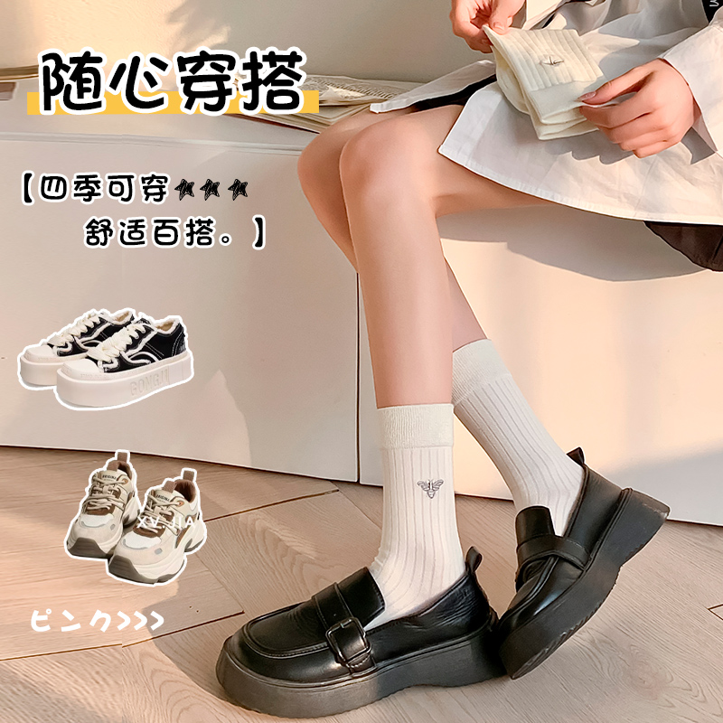 小腿袜子女春秋季 JK潮 过膝袜纯棉中筒袜微压显瘦无骨长筒长袜夏季