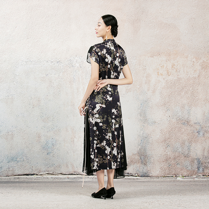 断码 盘扣旗袍领连衣裙收腰长袖 秒杀 新中式 缎面气质 太平鸟女装