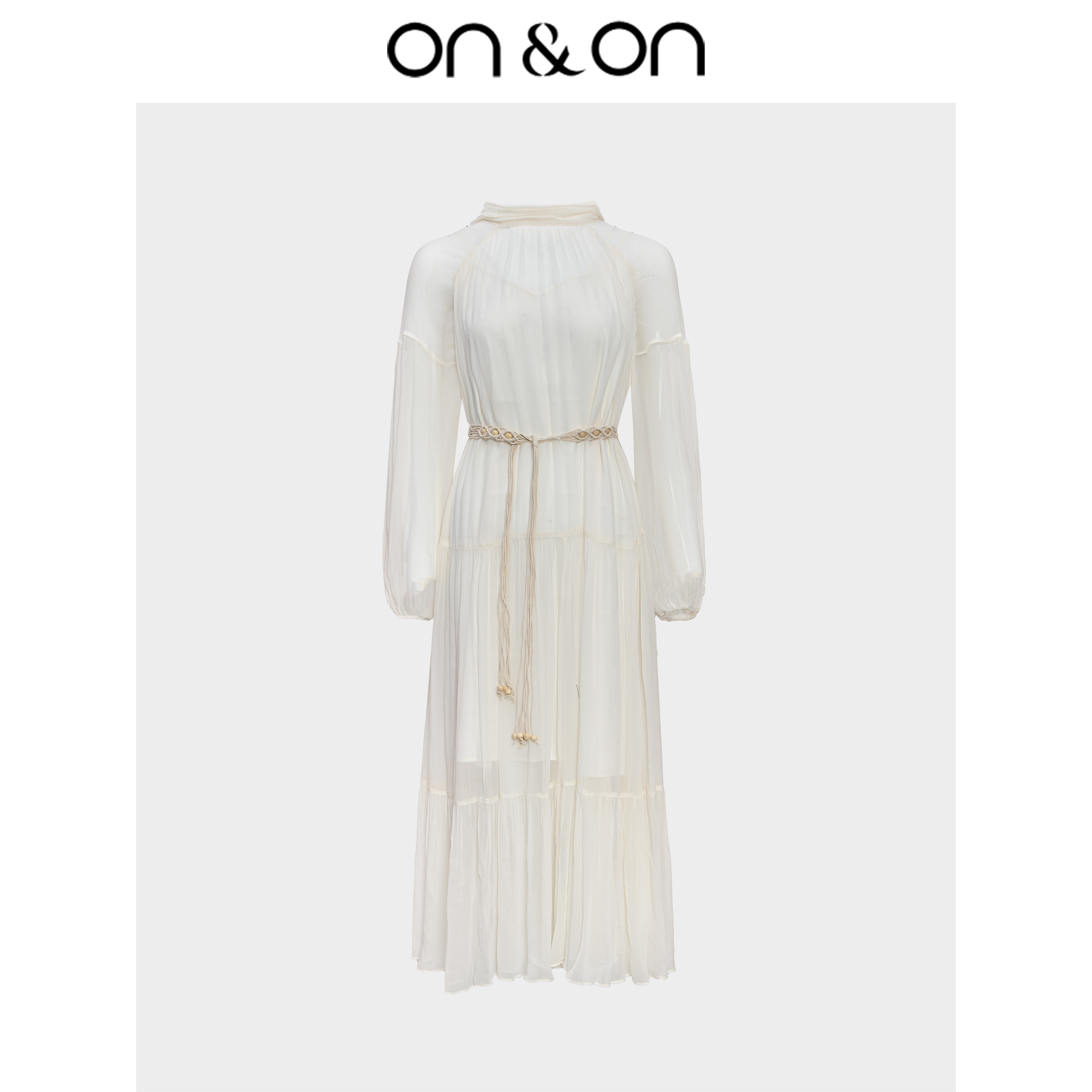 连衣裙 浅咖温柔风飘逸长袖 乐町木耳边V领碎花连衣裙年秋季 新款