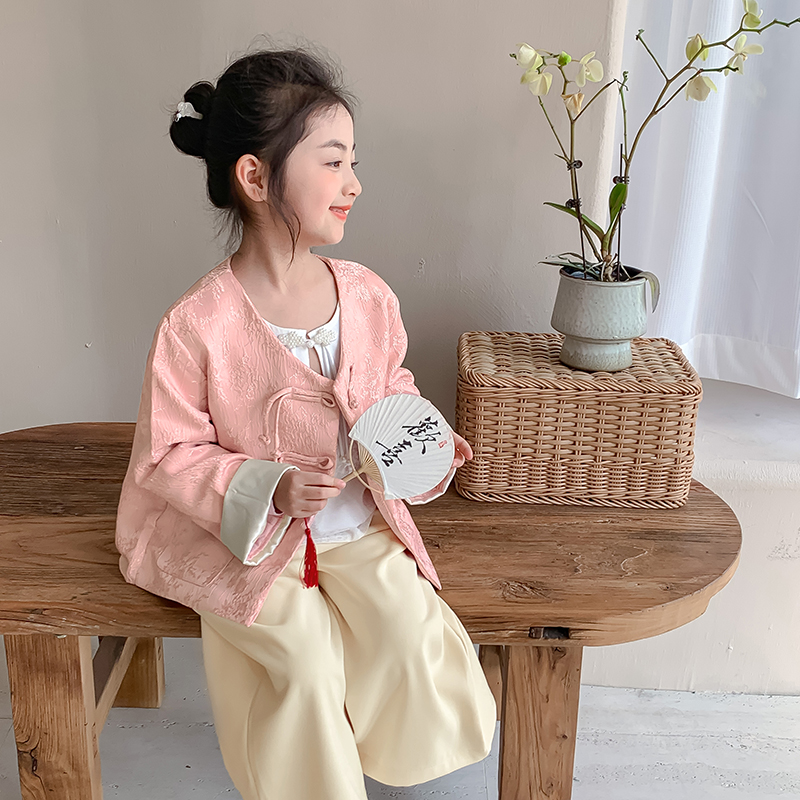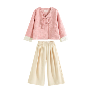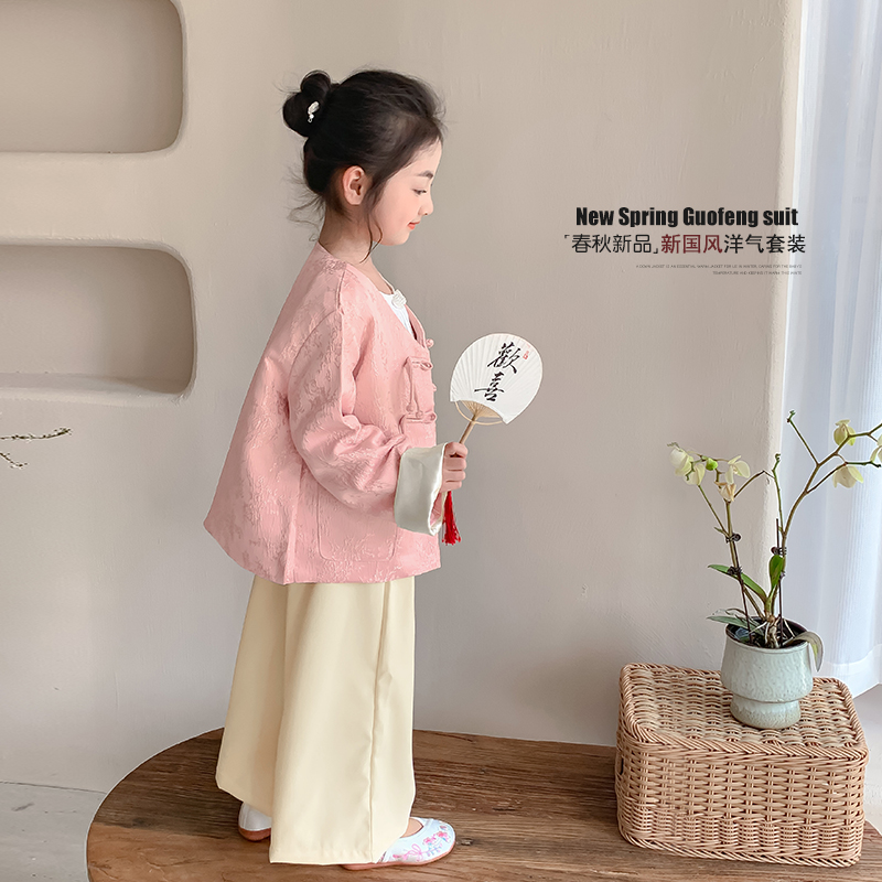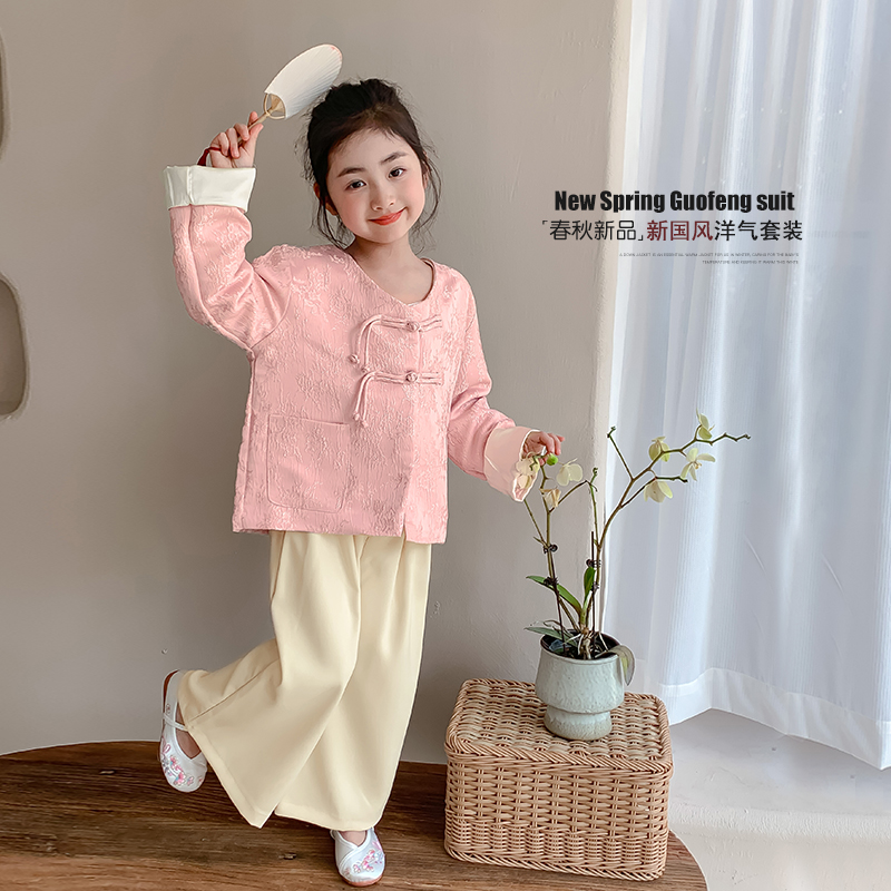 儿童复古国风外套小女孩阔腿裤 女童新中式 2025新款 套装 两件套 秋装