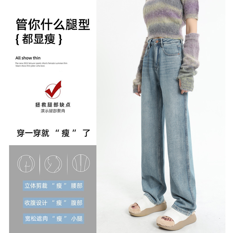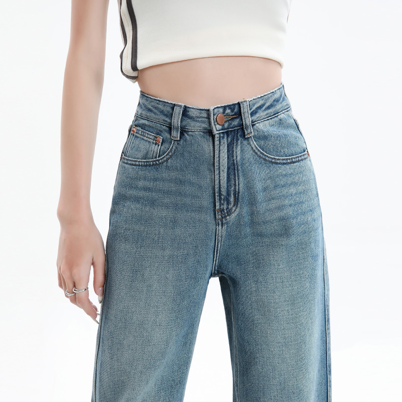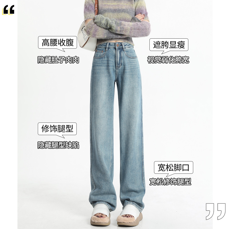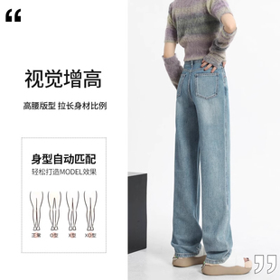 复古高腰宽松显瘦显高阔腿长裤 逸阳窄版 新款 女2025秋季 直筒牛仔裤