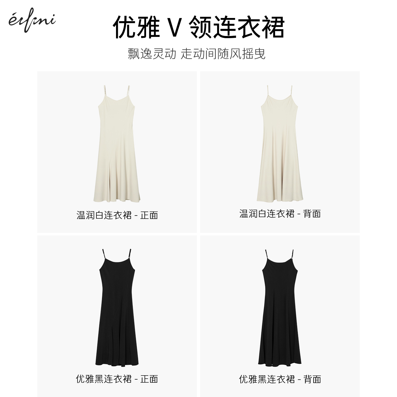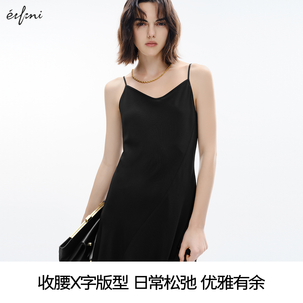 伊芙丽气质御姐轻奢高级感黑色白色吊带裙女2024秋装 小礼裙 新款