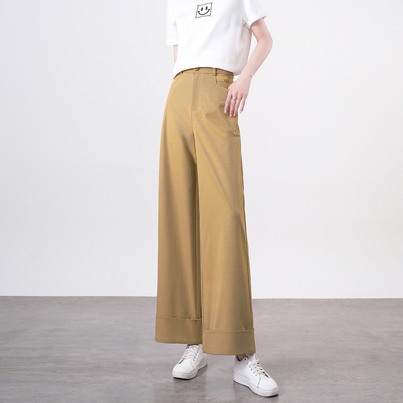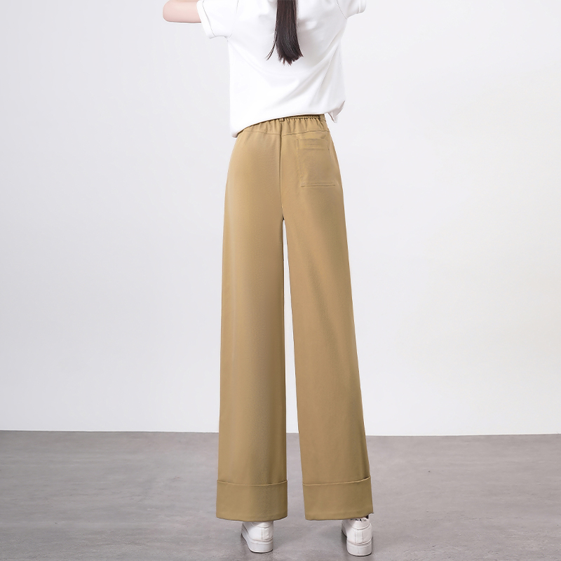 春款 脚阔腿裤 气质通勤挺阔长裤 女式 白鹿语时尚 休闲裤 翻边裤