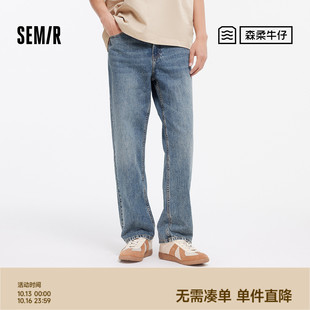森马牛仔裤 裤 男宽松直筒拖地裤 夏季 子显高 垂感复古长裤 森柔牛仔