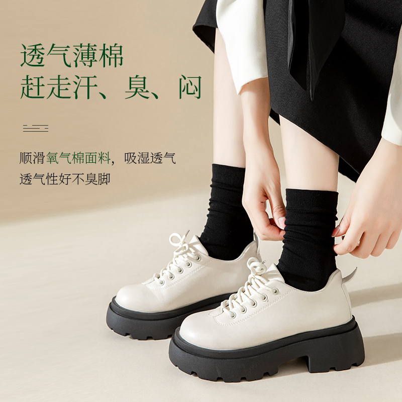 女中筒袜堆堆袜乐福鞋 长筒非纯棉潮春秋季 夏季 黑色袜子女配小皮鞋