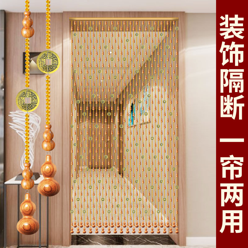 珠帘桃木葫芦隔断帘五帝铜钱门对门挂帘卫生间过道成品门帘免打孔
