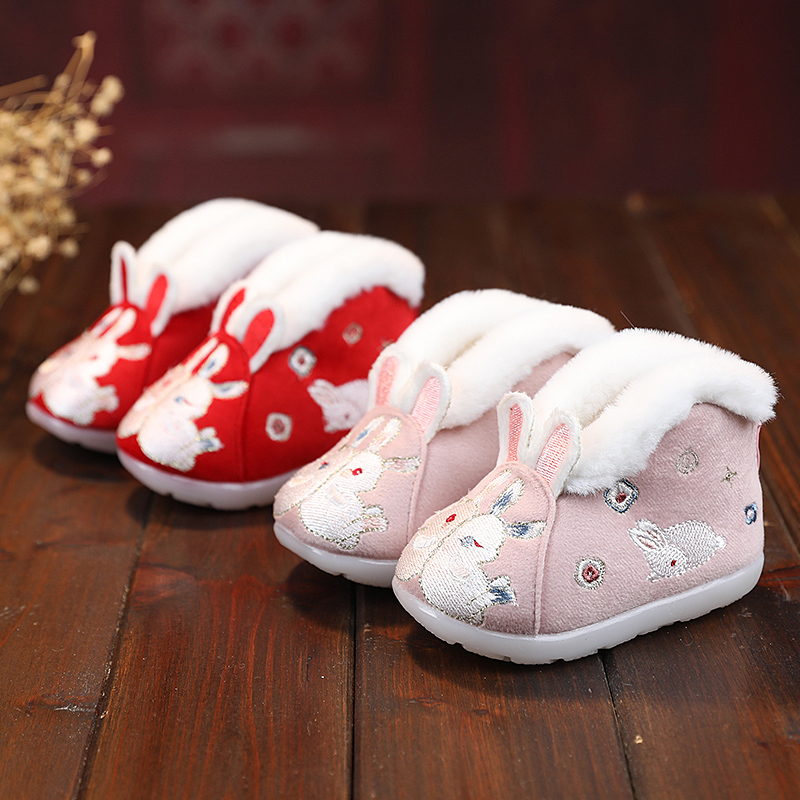 抓周鞋 汉服绣花鞋 婴儿鞋 马面裙古风儿童靴子加绒棉鞋 女童2025新款