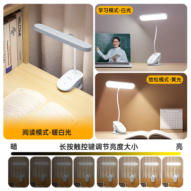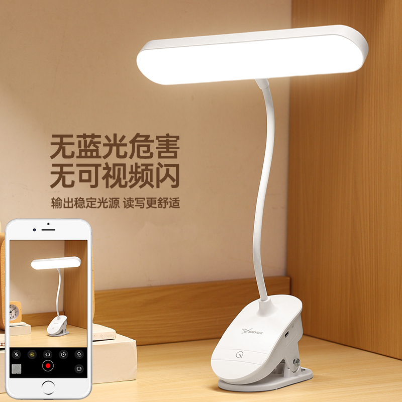 雅格小台灯护眼学习专用大学生宿舍灯充电夹子夹式 床头阅读床上灯
