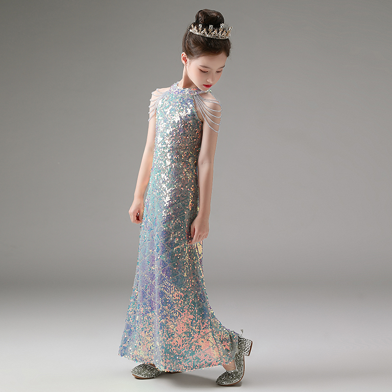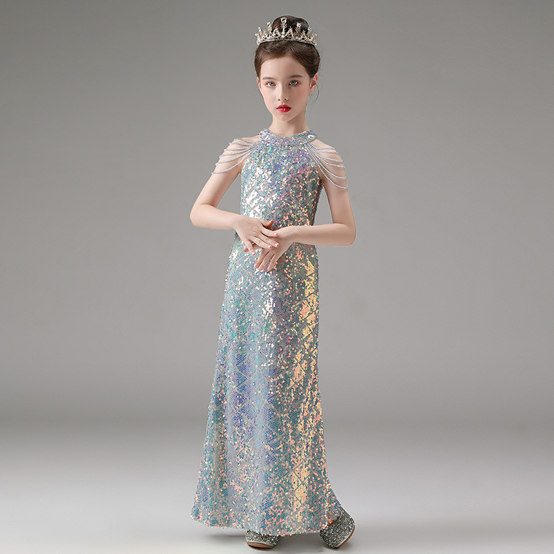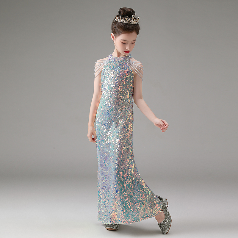 儿童晚礼服高级感美人鱼公主裙女童生日钢琴演出服主持走秀鱼尾