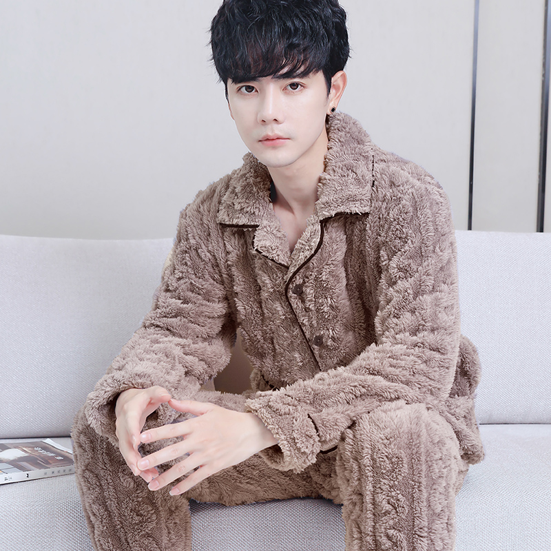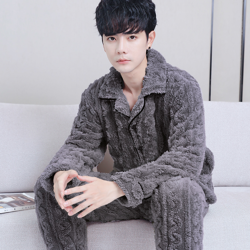 法兰绒家居服 睡衣简约保暖冬款 睡衣男秋冬长袖 加厚加绒珊瑚绒男款