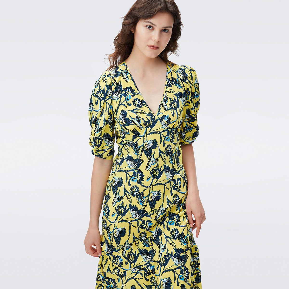 v领长袖 2025新款 显瘦休闲收腰气质短裙胖mm 碎花连衣裙女秋季 大码