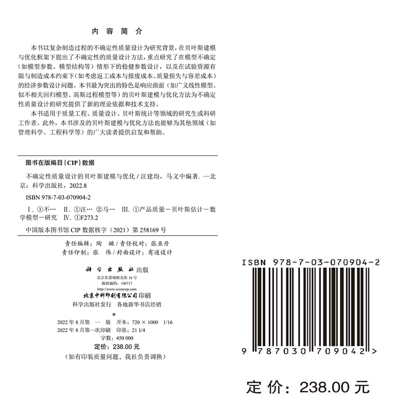 贝叶斯建模与优化 汪建均 马义中 正版 社 不确定性质量设计 科学出版 9787030709042 现货