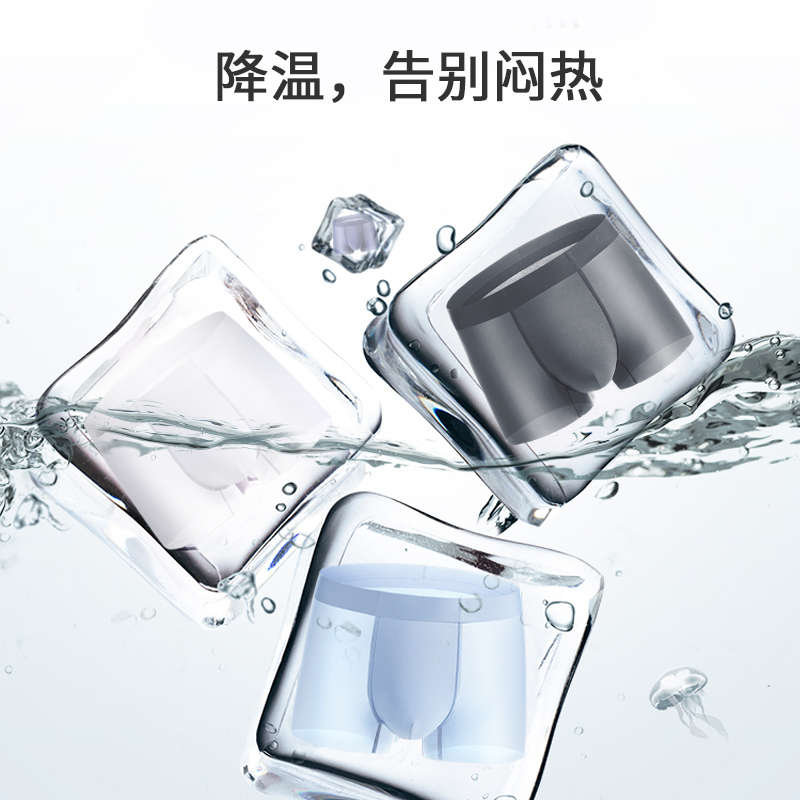 内裤 平角裤 3条装 薄夏天速干四角男短裤 冰丝无痕透气宽边大码 男士
