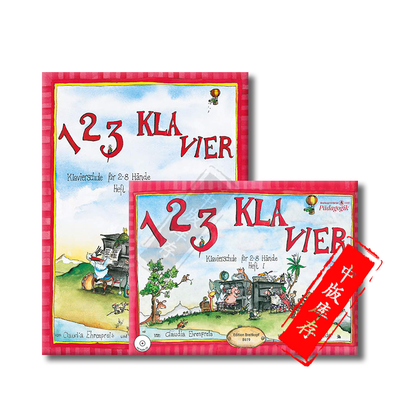 8手联弹教材 Vol Ehrenpreis 123钢琴学校 Wohlwender 全套共一至二卷 含CD德语版 School 沃尔温德 大熊原版 Piano 乐谱书
