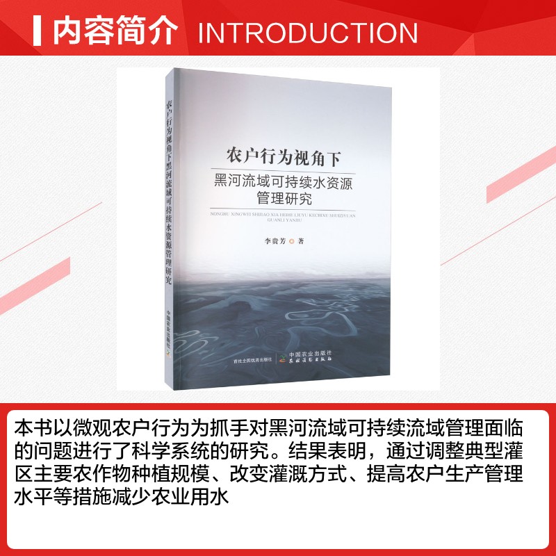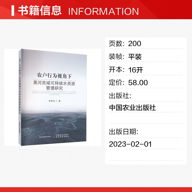 专业科技 社 著 中国农业出版 图书籍 新华书店正版 新 水利 建筑 李贵芳 农户行为视角下黑河流域可持续水资源管理研究