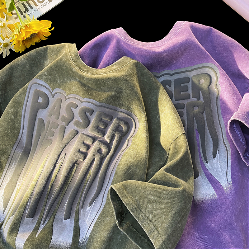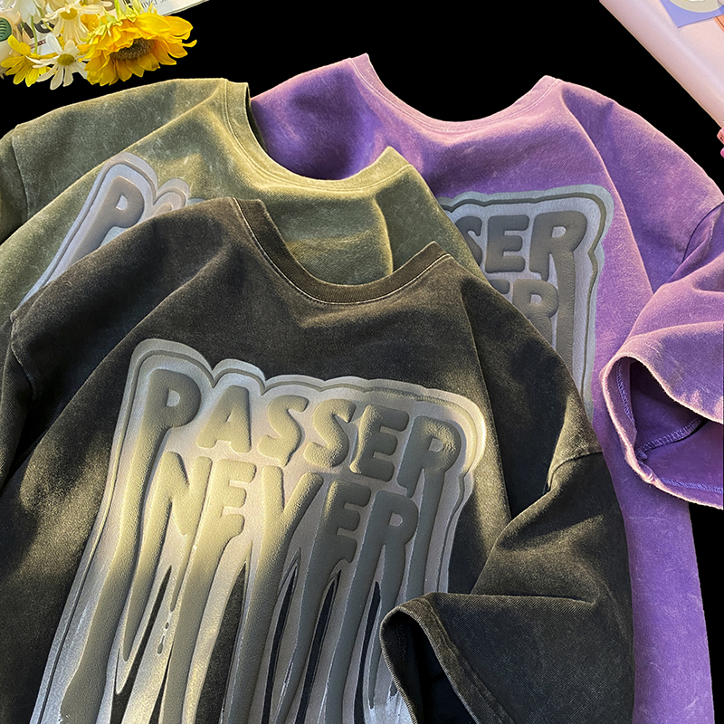 紫色320g重磅t恤男水洗做旧cleanfit短袖 oversize潮牌情侣半截袖