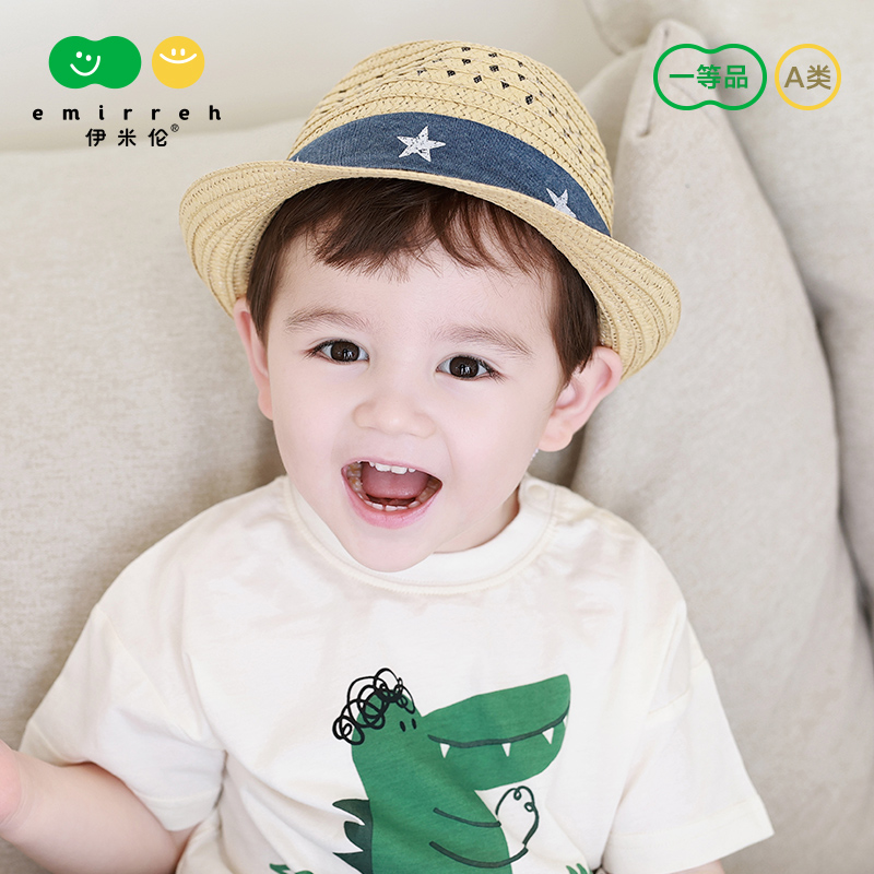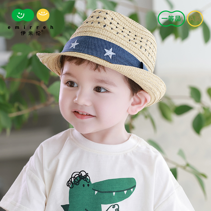 伊米伦宝宝草帽夏季 透气儿童遮阳帽出游男童帽子防晒帽百搭渔夫帽
