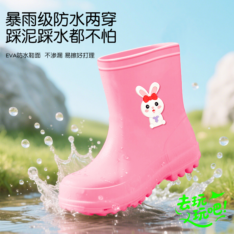 中筒宝宝水鞋 新款 雨靴 男童女童防水防滑加厚耐磨外穿胶鞋 儿童雨鞋