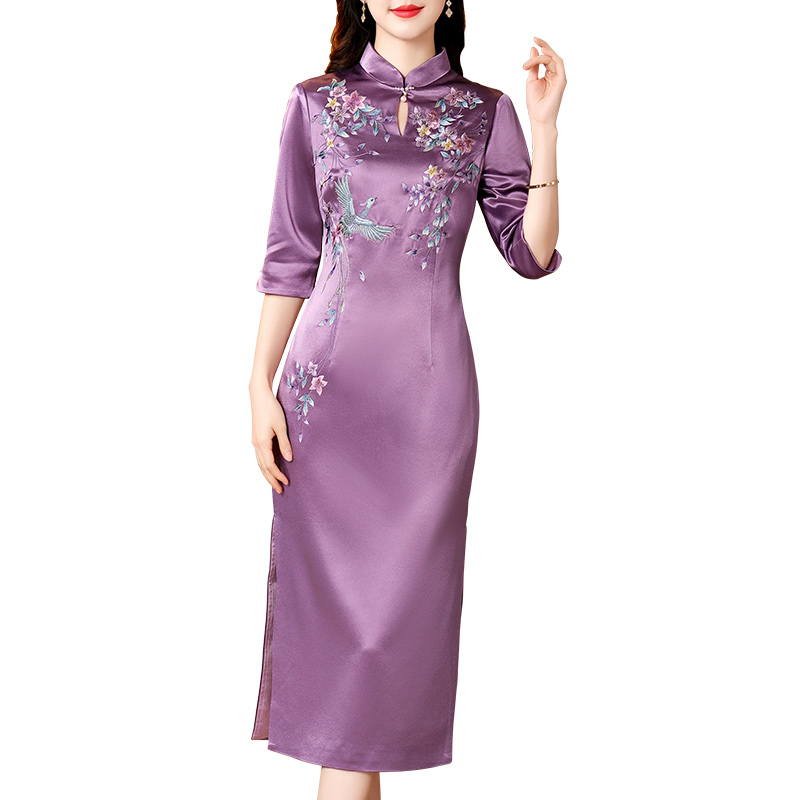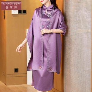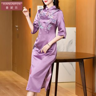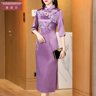 香妮芬2025秋季 紫色醋酸妈妈婚宴礼服洋气高贵改良旗袍高级感 新款