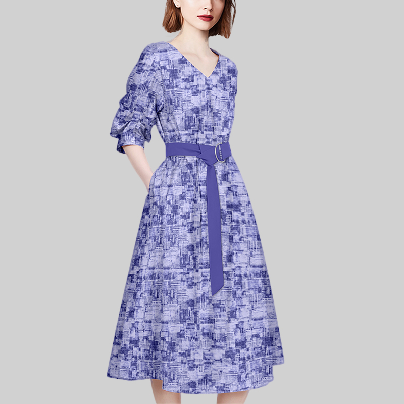 中长裙子 赫本风V领系带收腰长袖 法式 气质连衣裙女2025年秋冬新款
