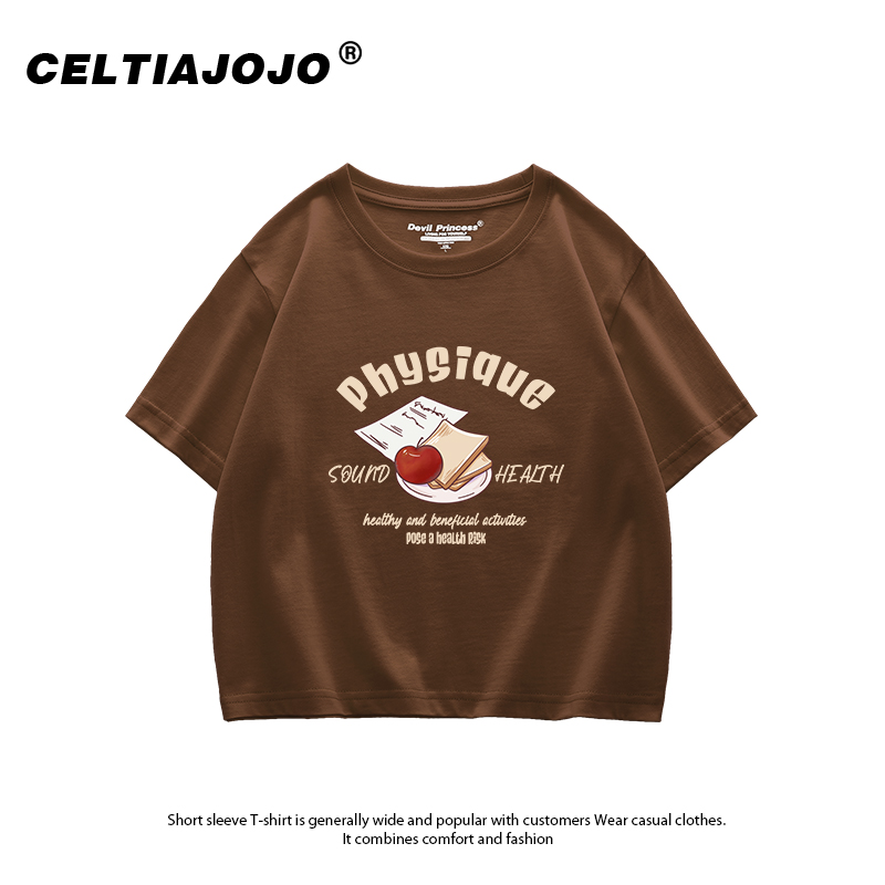 vibe学院风高街ins深灰色短款 上衣 露脐女t恤复古港风百搭正肩短袖