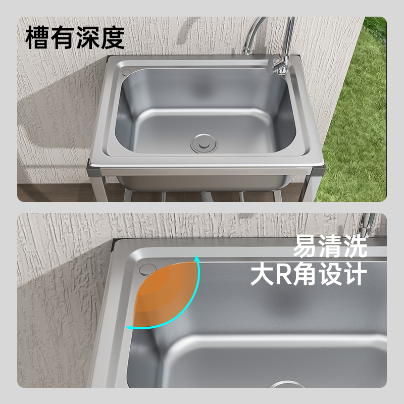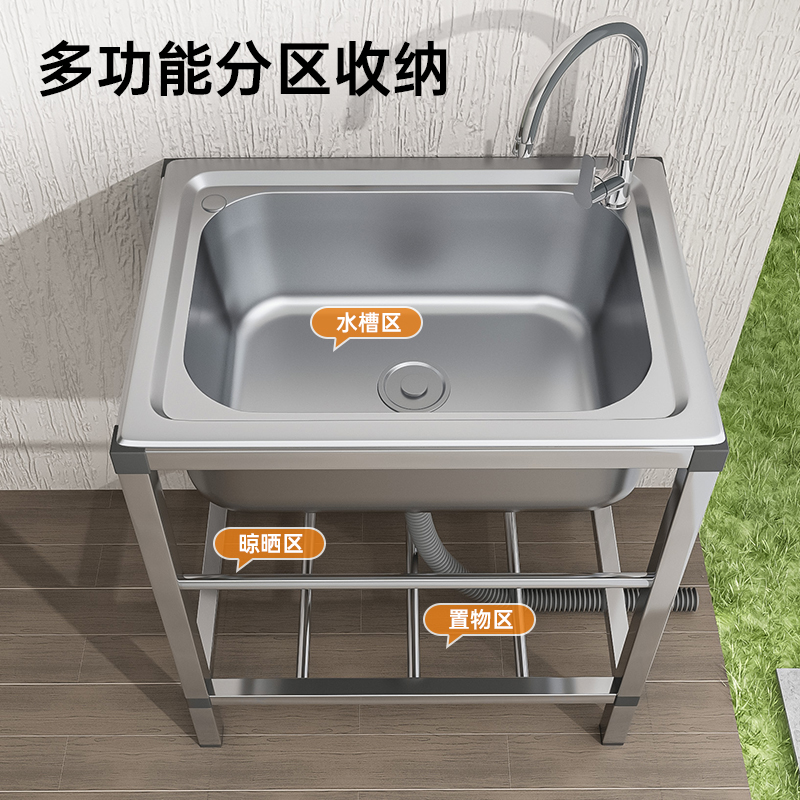 户外室外不锈钢304水槽加厚带支架洗菜盆阳台晒台花园洗手盆水池