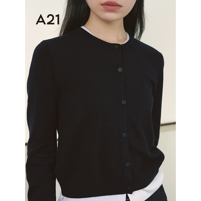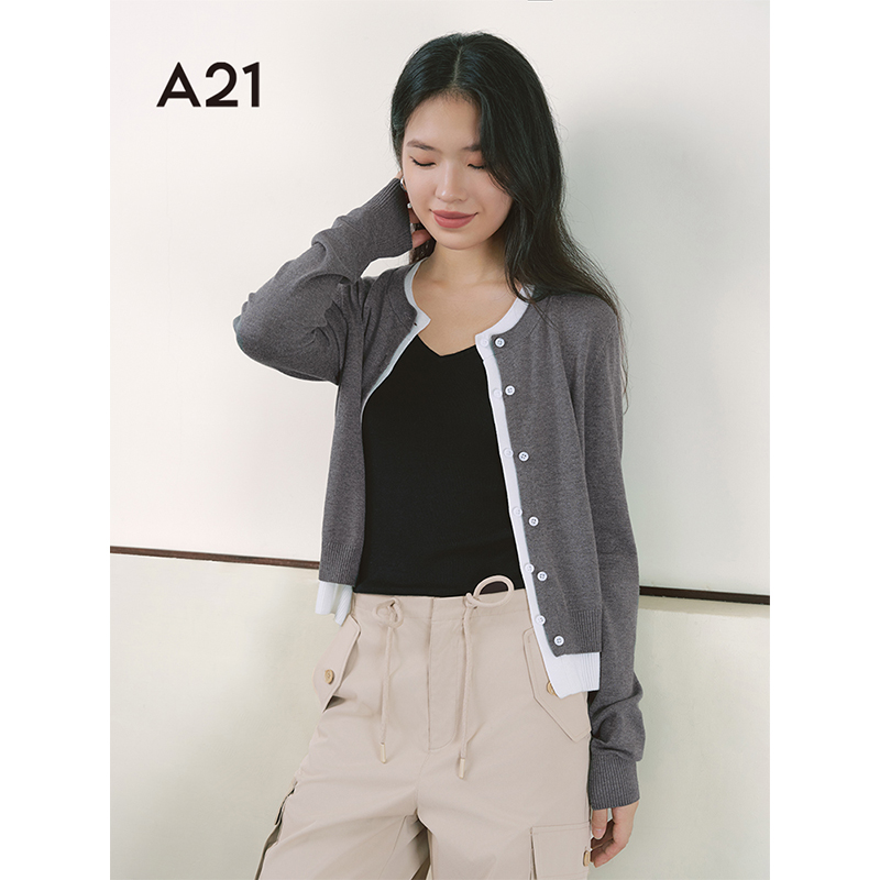 圆领开衫 A21女装 韩版 2025春秋新款 上衣 拼接撞色假两件毛针织衫