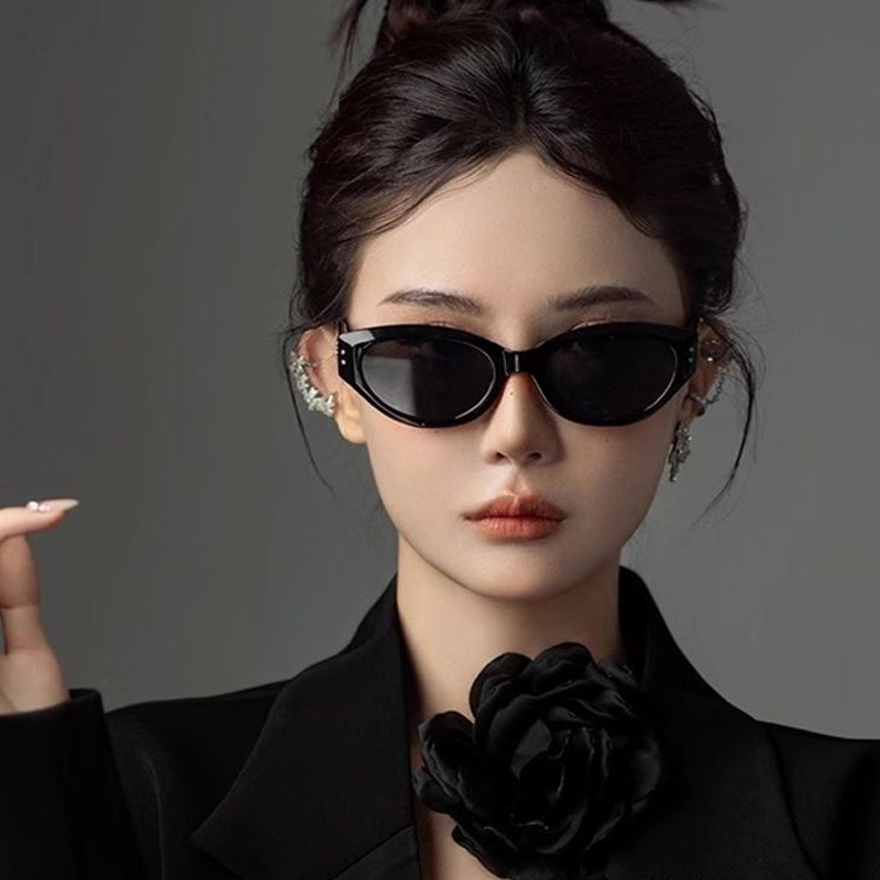 复古猫眼墨镜女款 高级感窄框眼镜防紫外线gm太阳镜方圆脸 2025新款