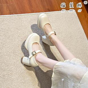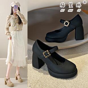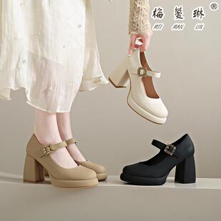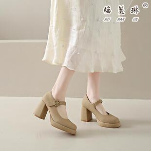 仙女风瓢鞋 秋季 浅口百搭中跟奶奶鞋 大码 真皮单鞋 女鞋 粗跟2025新款