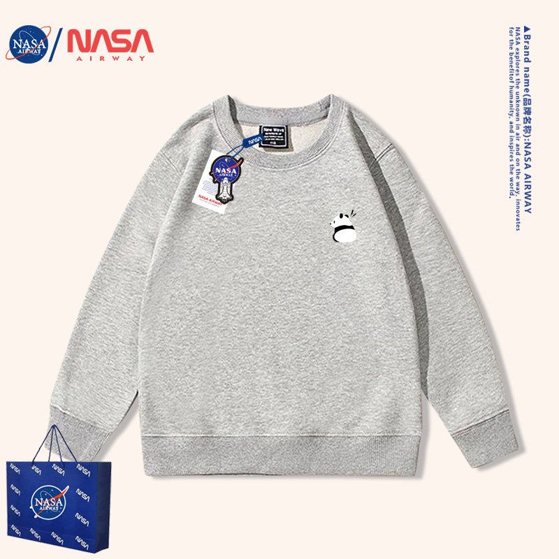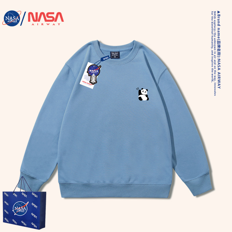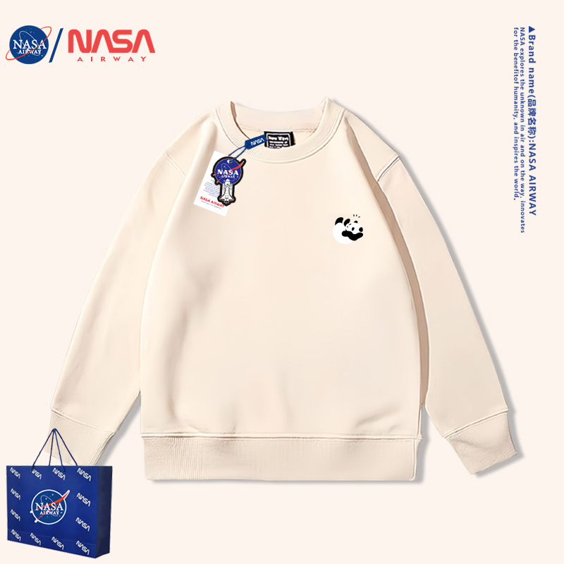 NASA潮牌可爱小熊猫趣味圆领卫衣男女大中小童装 亲子衣服 洋气薄款