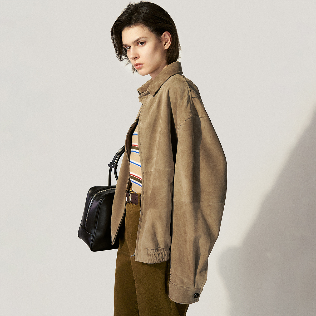 ICH 复古休闲夹克外套 MODE高级质感设计小众立领皮衣外套机车美式