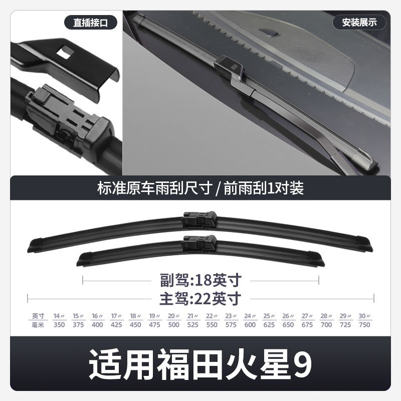 适用北京汽车福田火星9九皮卡雨刮器配件原装 胶条北汽无骨雨刷片