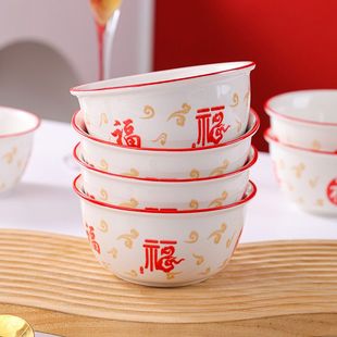 餐具 面碗套装 吃饭碗家用高颜值陶瓷中式 红色喜庆福字2025新款