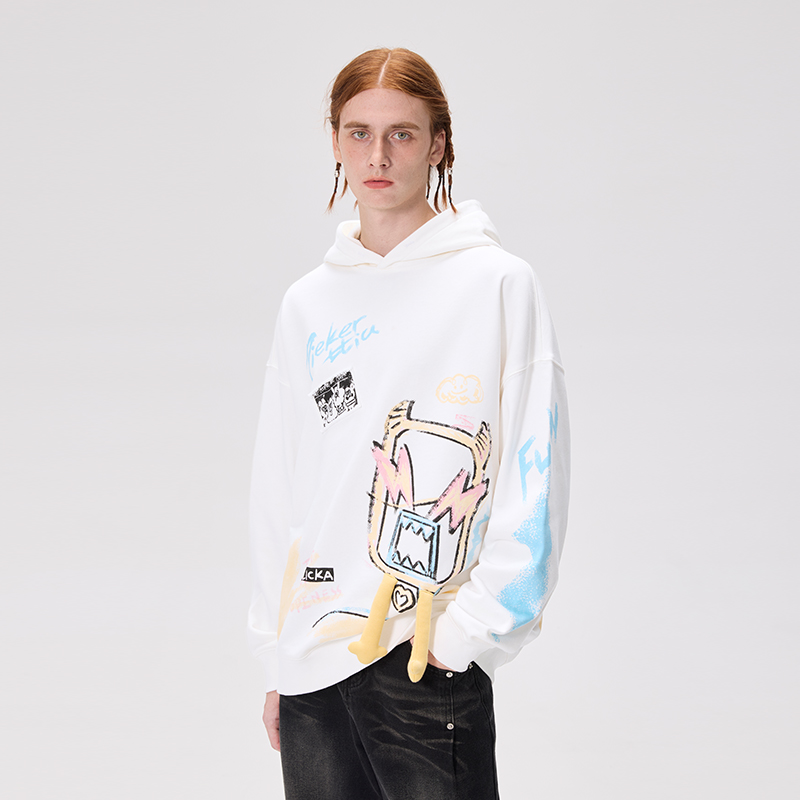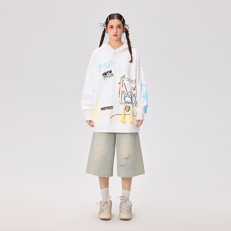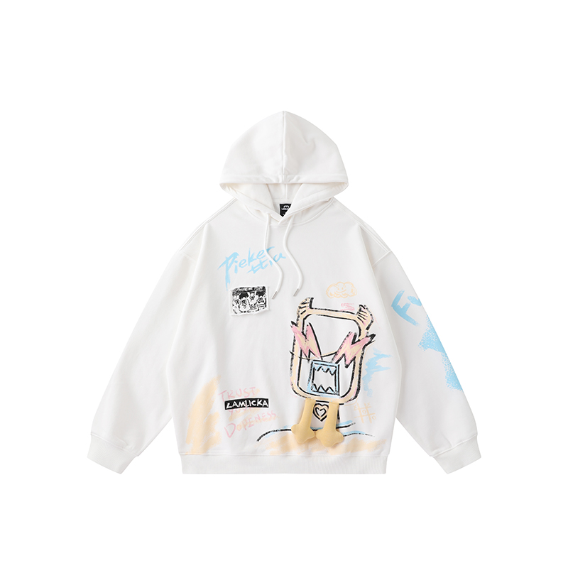 美式 新款 百搭潮牌上衣 扎染项链涂鸦印花卫衣男春秋季 查尔斯桃心