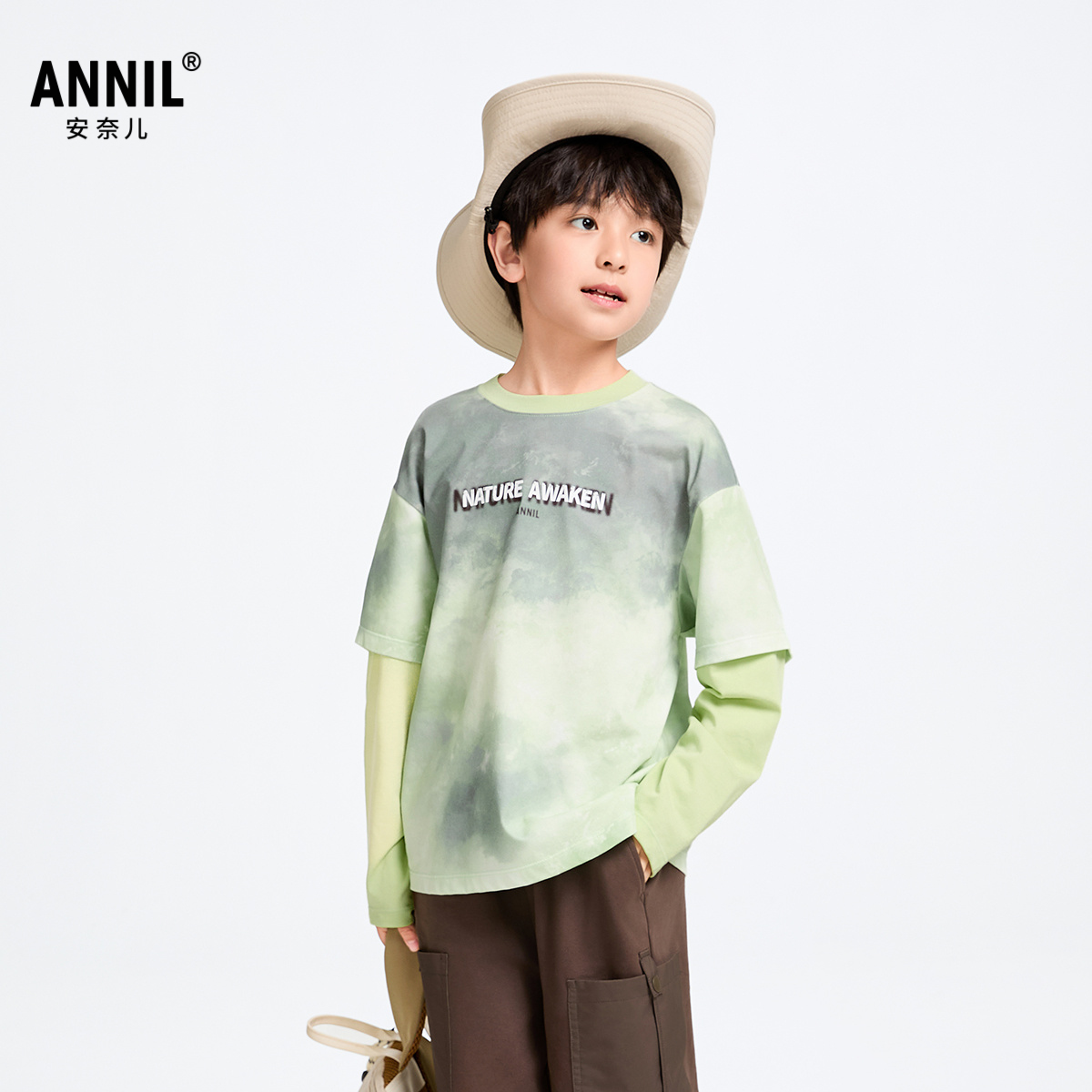 T恤2025春新款 男童圆领长袖 安奈儿童装 弹力AB511512 商场同款