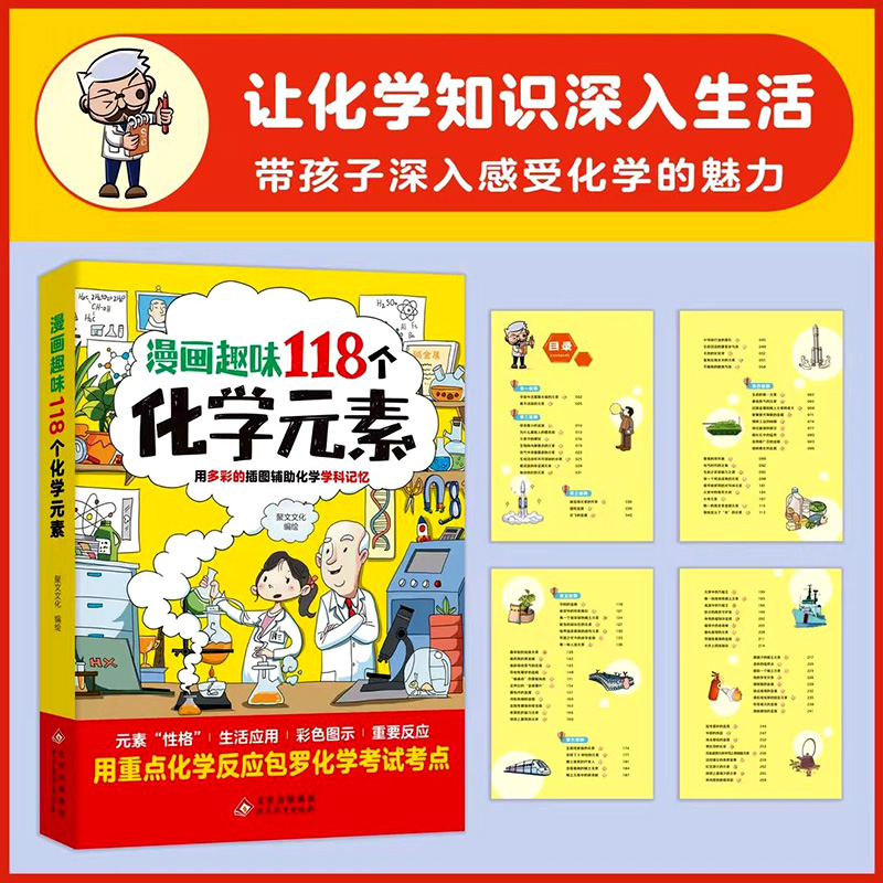 抖音同款 化学启蒙漫画书轻松掌握重难点 素孩子爱看 15岁儿童青少年化学启蒙百科大全书小学生课外阅读书籍 漫画趣味118个化学元