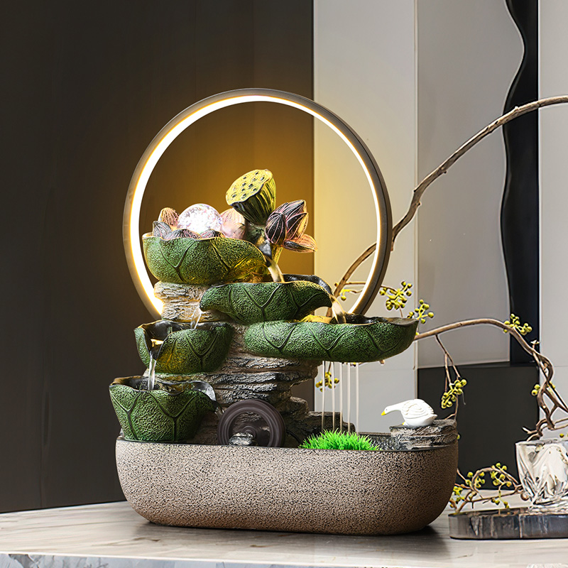轻奢流水生财摆件循环水景观客厅玄关办公室风水轮加湿器乔迁新居