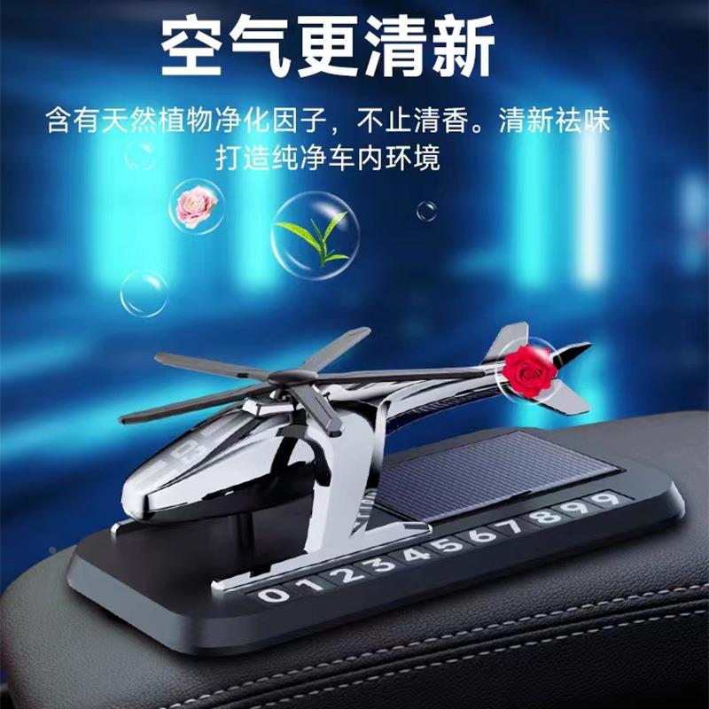 太阳能车载香薰汽车香水摆件直升机创意停车牌挪车战斗机香氛饰品