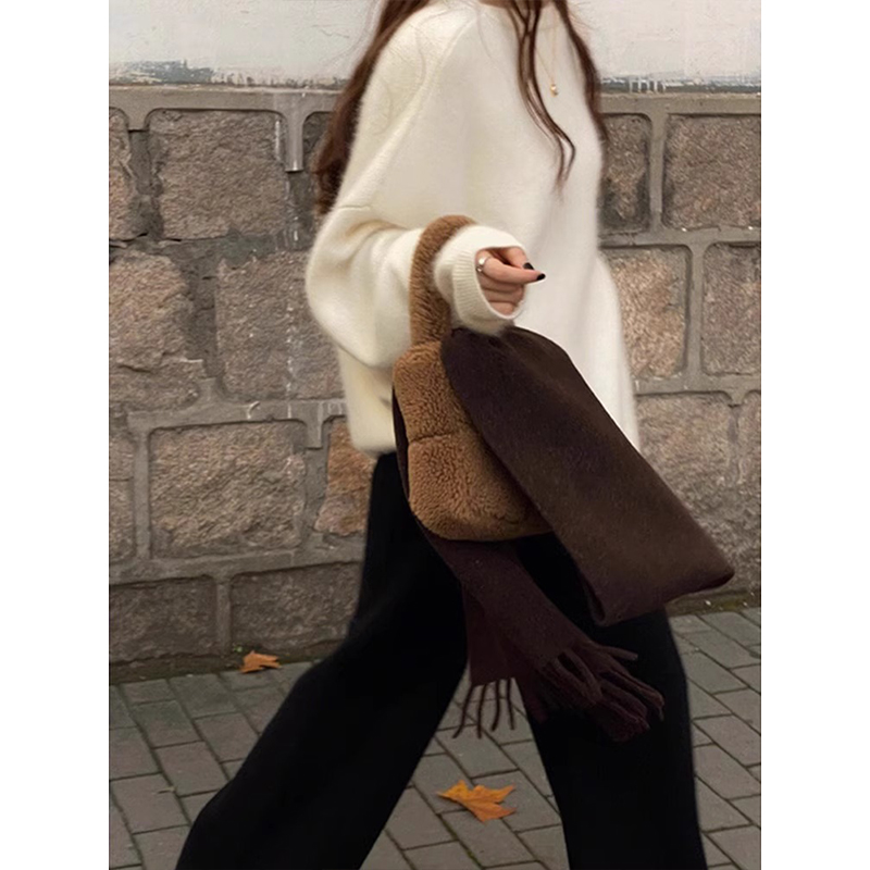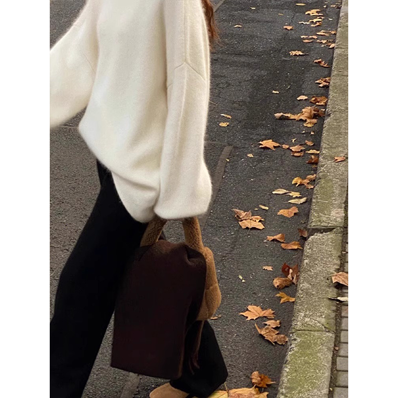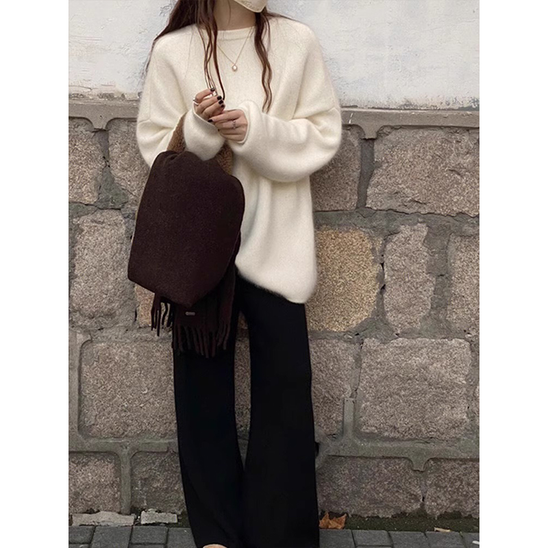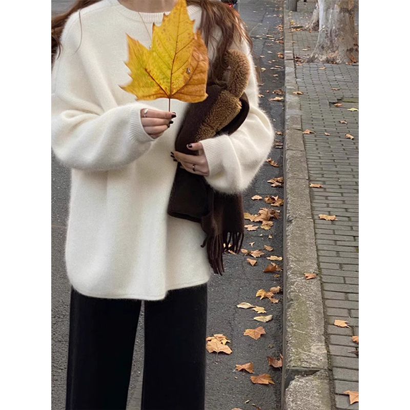 高级感上衣宽松打底针织衫 圆领100%纯山羊绒衫 女高端毛衣秋冬新款