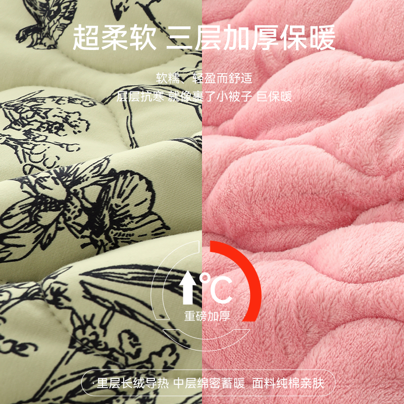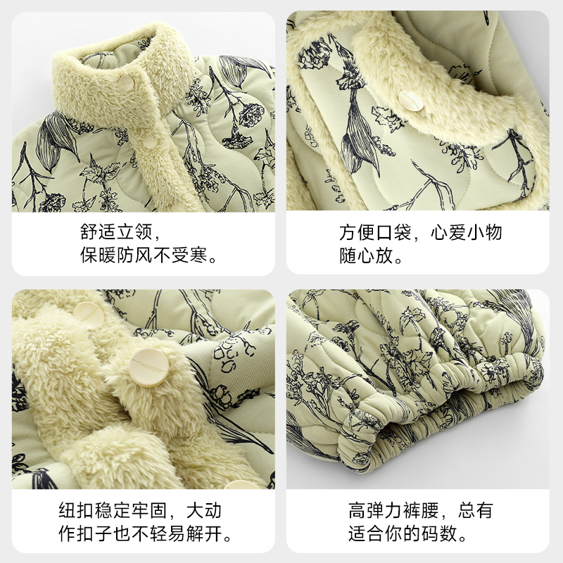 保暖可外穿家居服套装 猫人空气夹棉睡衣女纯棉三层加厚秋冬季 大码