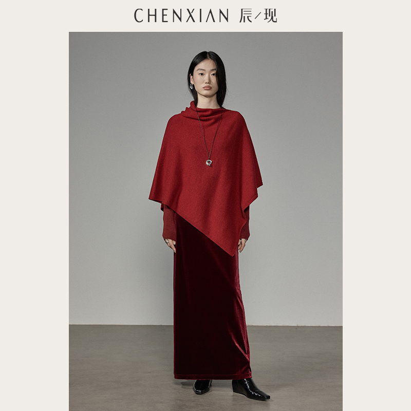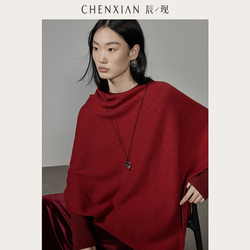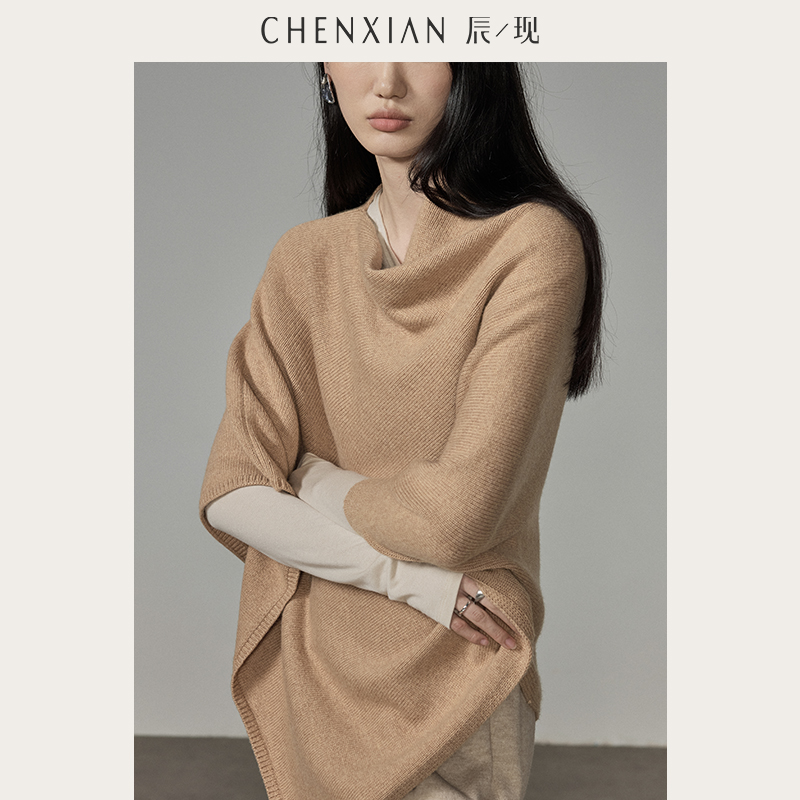 CHENXIAN辰现不规则叠穿荡领针织衫 羊毛加厚外搭披肩斗篷外套女冬
