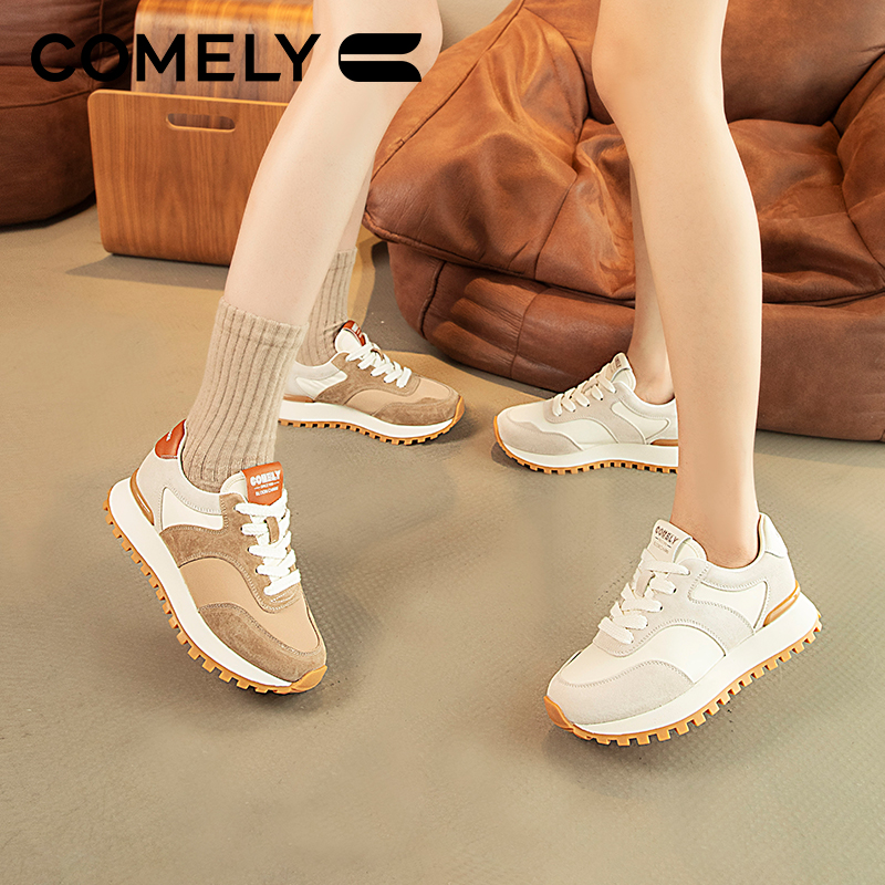 女款 休闲运动鞋 2025秋季 棕色内增高设计感小众时尚 新款 人本德训鞋